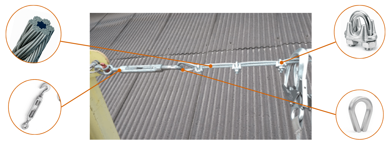 • Amarrações com cabos de aço;