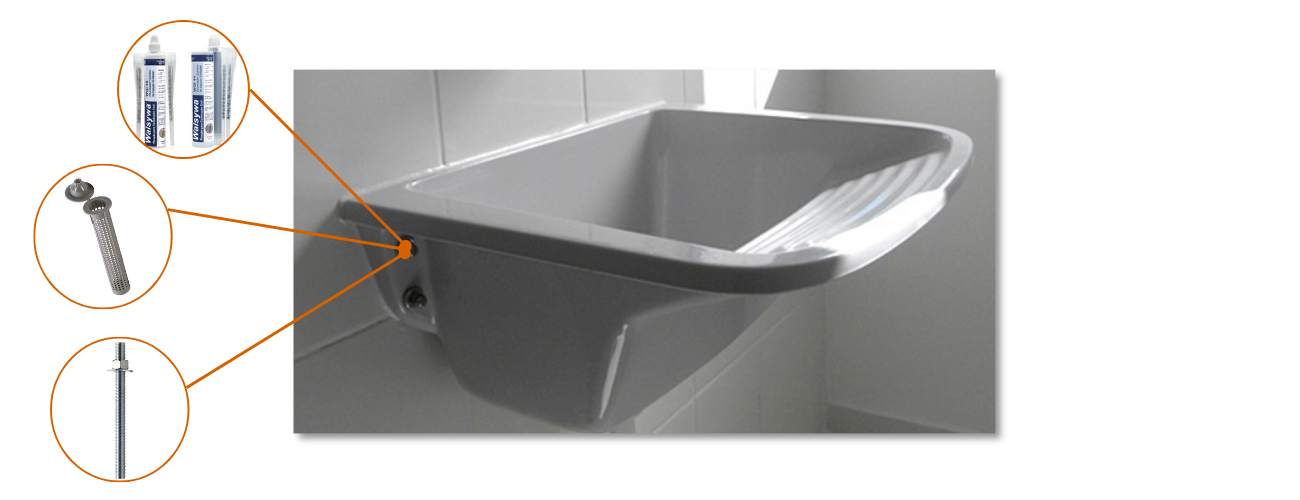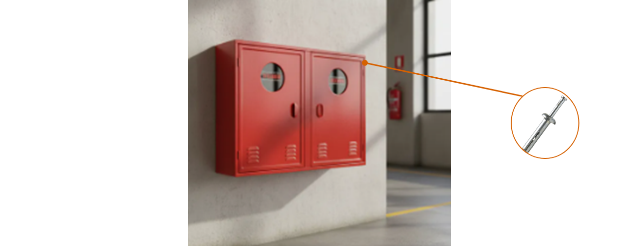 • Para ancoragens leves (como luminárias, quadros e painéis) em sistemas de ancoragem de alta resistência;