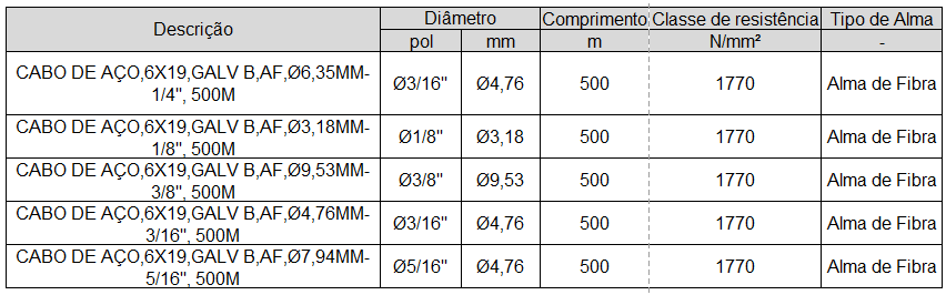 WALSYWA » Produtos » Fixação Mecânica » Cabos de aço » CABO DE AÇO 6X19