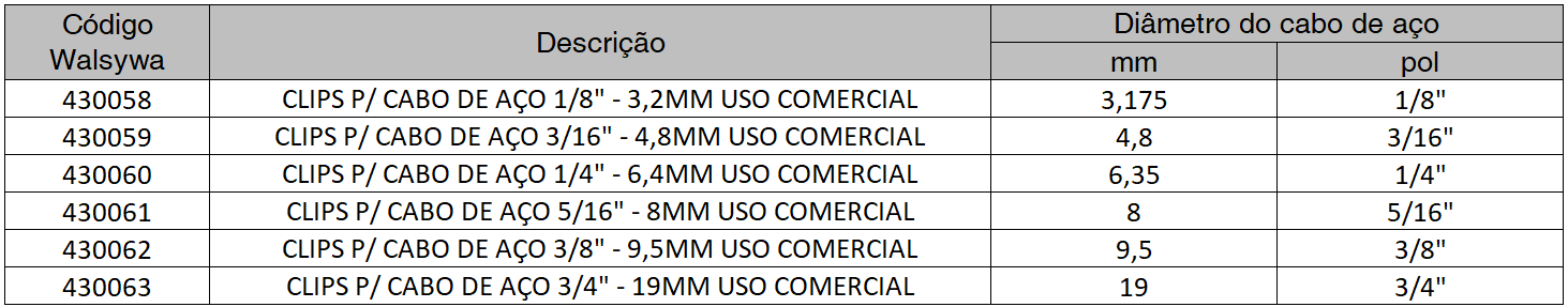Disponíveis em diferentes tamanhos para atender variados diâmetros de cabo, os clips comerciais são a solução prática, econômica e eficiente para quem busca qualidade e proteção no manuseio de cabos de aço.
