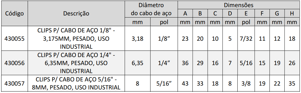 Clips para Cabo de Aço Industrial são acessórios essenciais utilizados na fixação, fabricado em aço de alta resistência, proporcionam excelente durabilidade, desempenho mecânico e resistência à corrosão, mesmo em ambientes severos e operações de uso contínuo