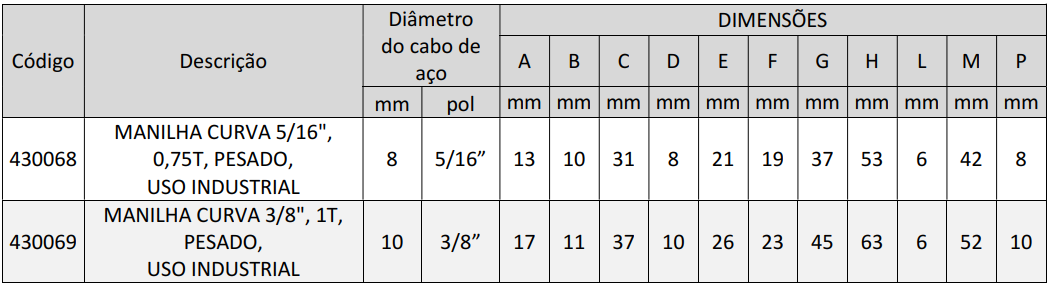 A manilha curva é um acessório de fixação utilizado na ancoragem, movimentação e união de cabos de aço, seu formato arredondado permite melhor acomodação dos cabos, reduzindo pontos de tensão e garantindo maior segurança durante o trabalho, fabricada em aço carbono de alta resistência, suporta grandes esforços mecânicos e oferece excelente durabilidade, possui pino roscado ou cavilha de segurança, garantindo travamento confiável e fácil montagem no campo.