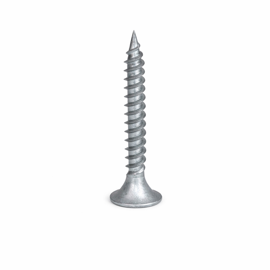 Parafuso drywall dacromet cabeça trombeta, com proteção de 1.000h no teste de salt spray e destina-se à fixação de chapas de gesso acartonado em perfis finos de aço, com ponta agulha.