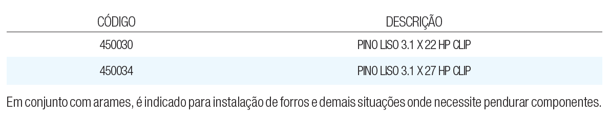 O pino montado com clip é usado principalmente na fixação de forros de gesso.